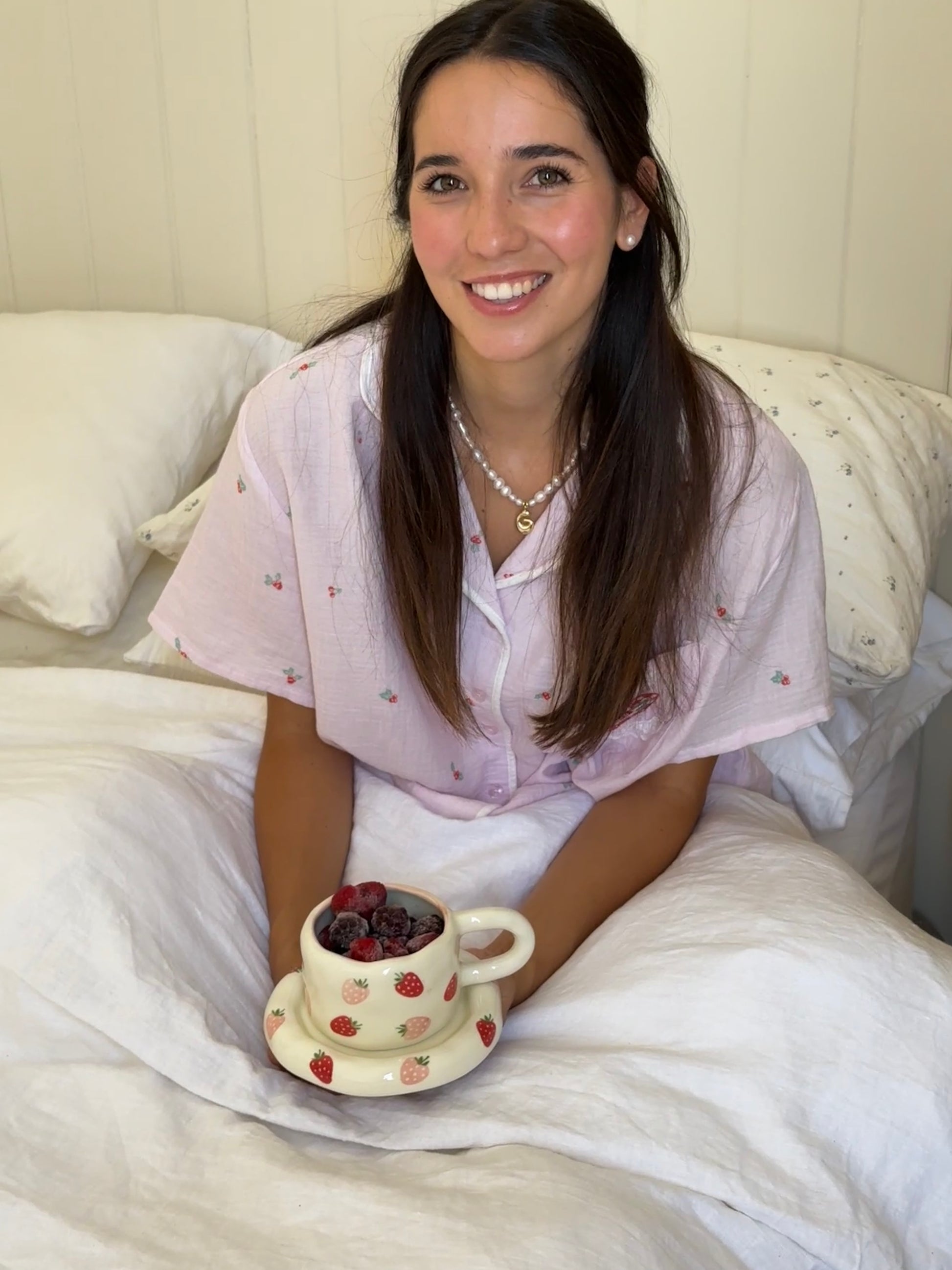 Hand-painted with dainty pink and red strawberries, La Fraise brings a touch of garden sweetness to your morning cup.