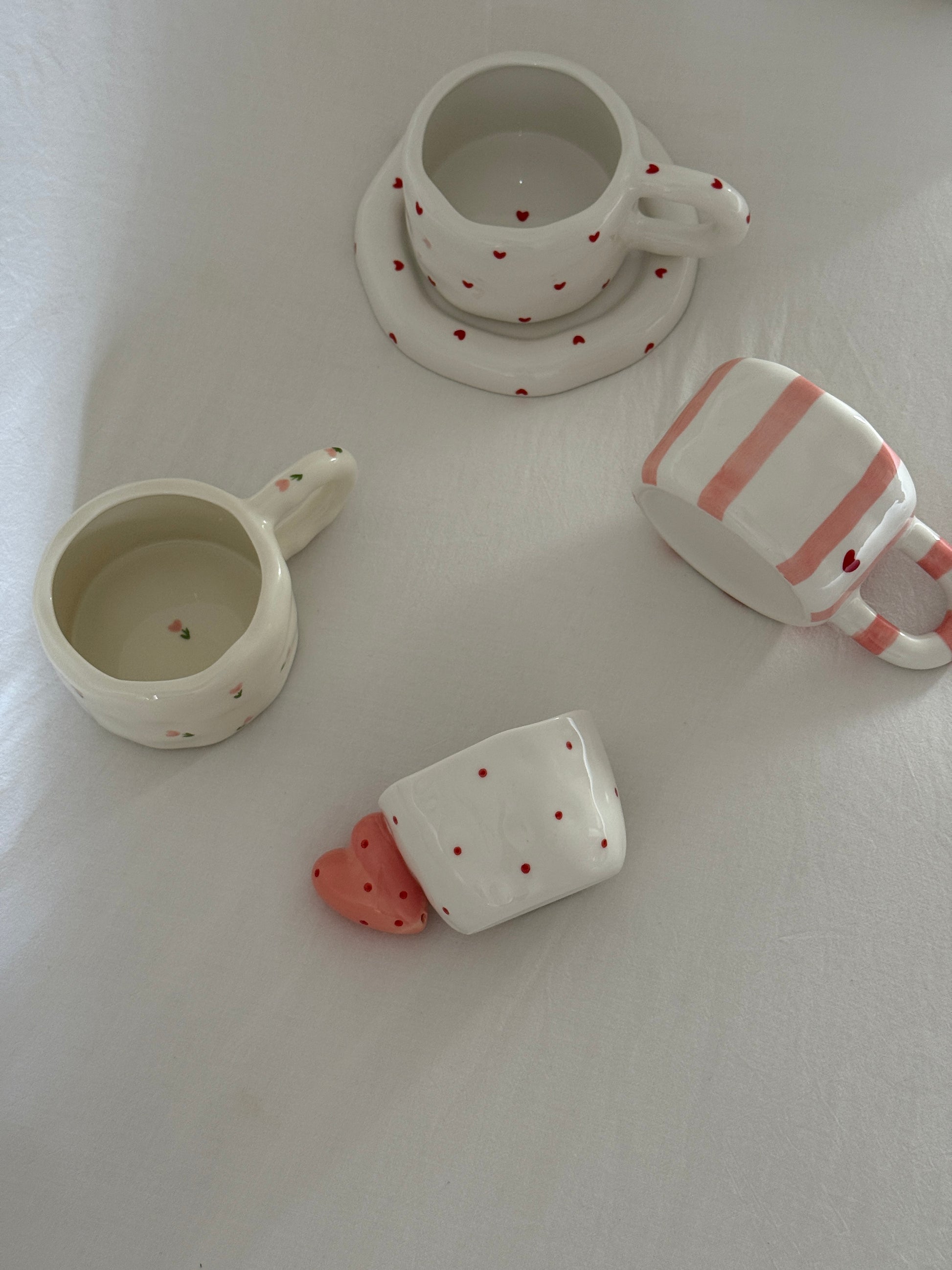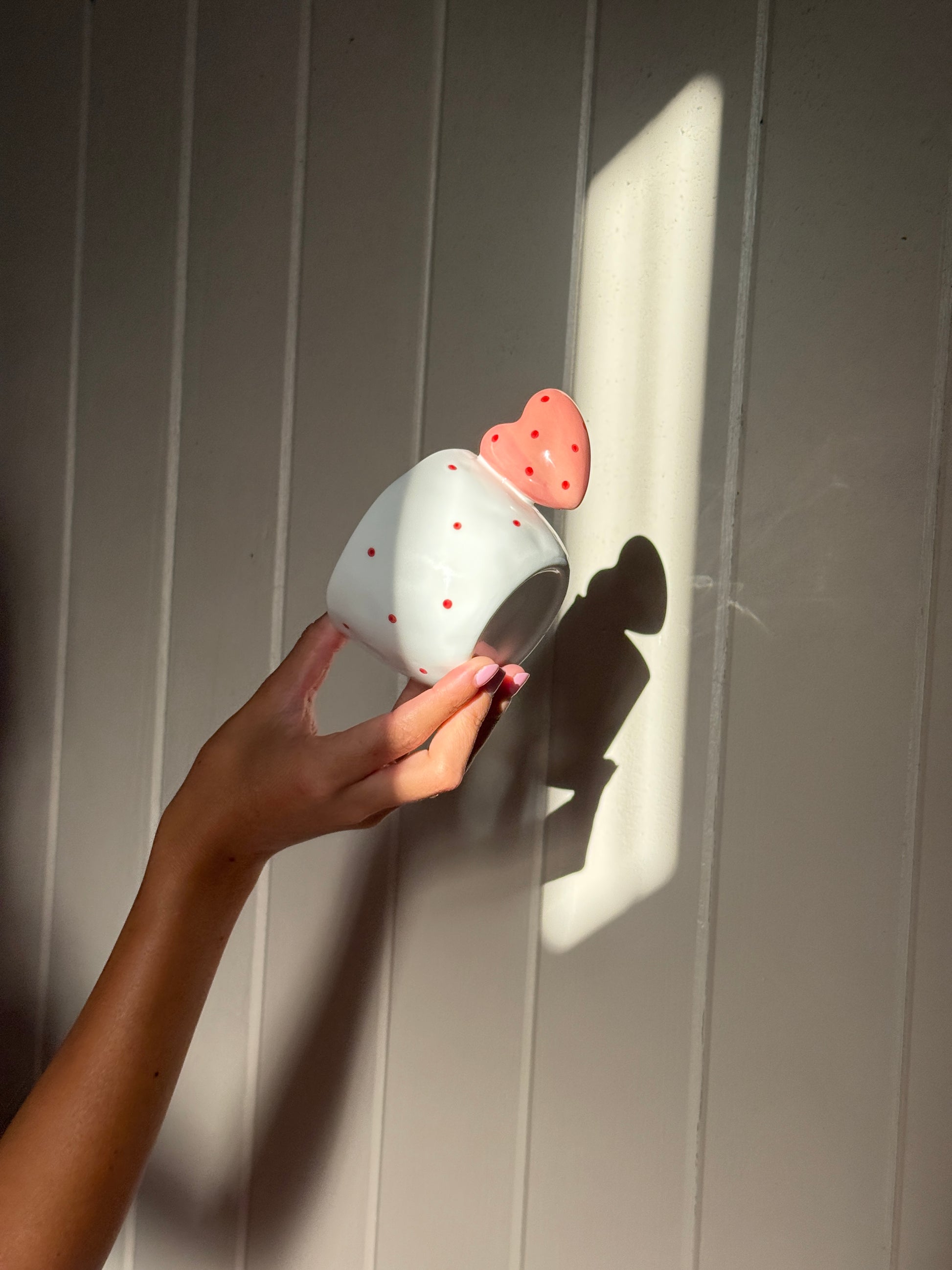 A sweet everyday mug with hand-painted dot details and a sweet heart handle. Designed to be used, not tucked away, it’s perfect for slow mornings and cosy moments.