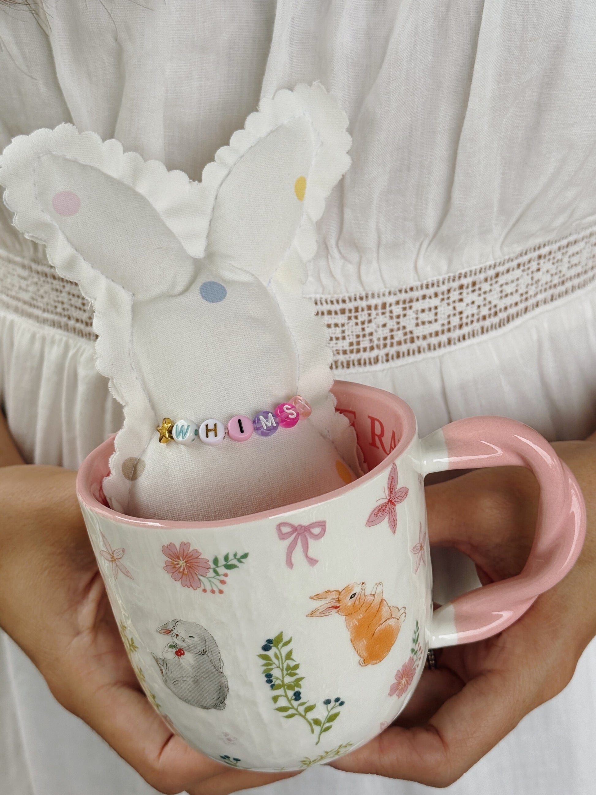 Our handmade Whimsy Bunnies are the sweetest little keepsakes for Easter and beyond. Each bunny is carefully handmade and filled with soft polyester filling, making them perfect for tucking into a mug, gifting to someone special, or displaying as part of your Easter décor.